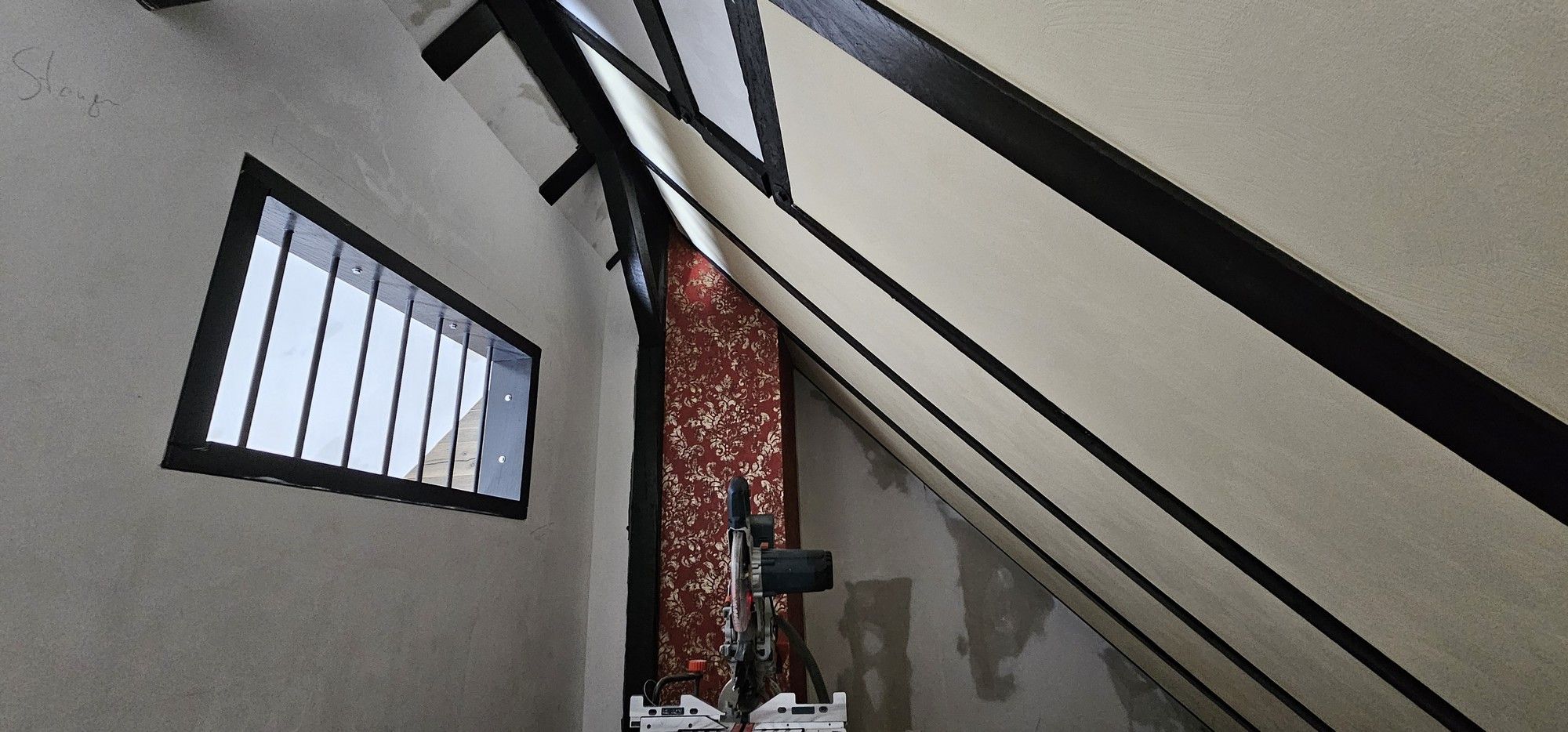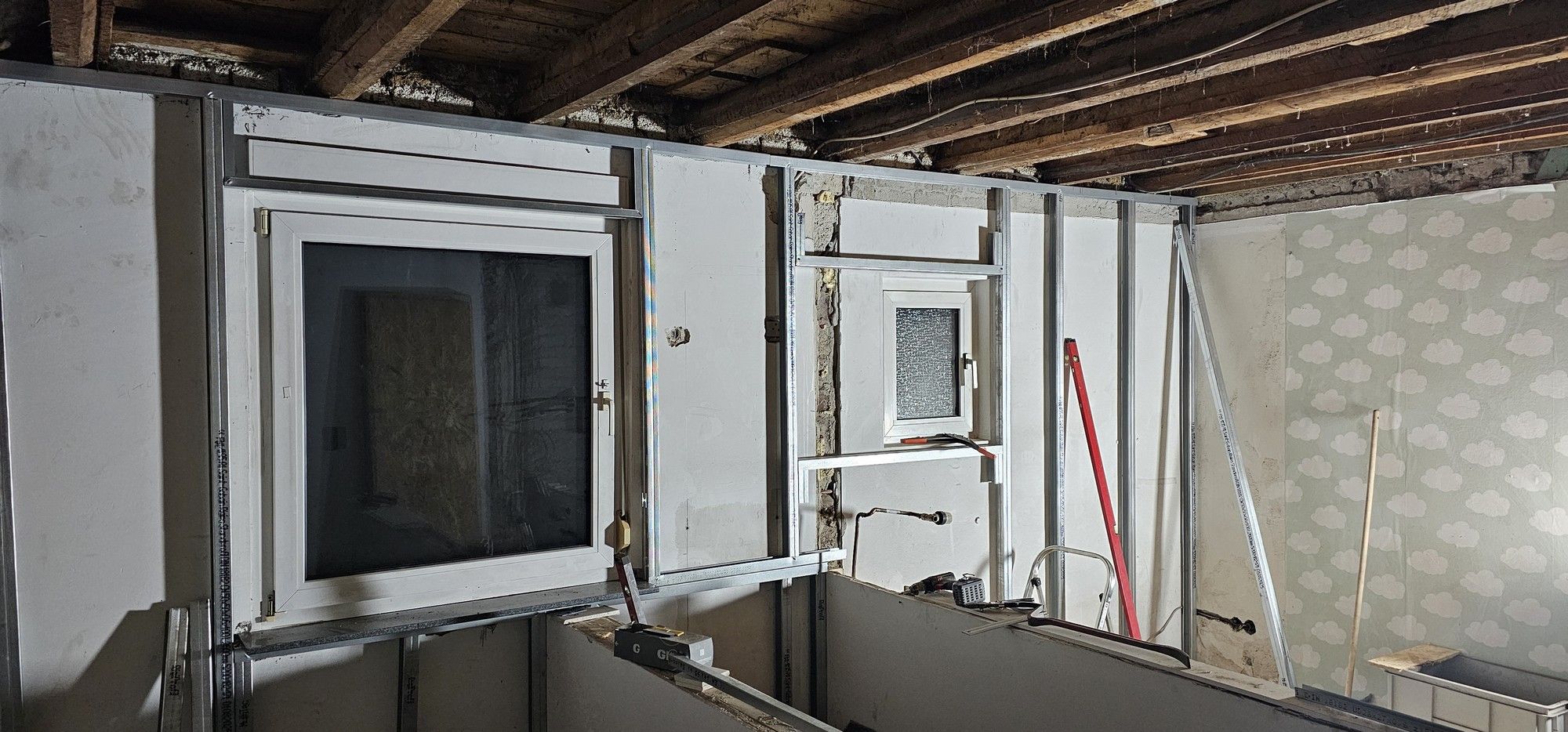 Unter dem Namen City-Apartment-Siegen renovieren wir gerade ein zweistöckiges Apartment mit ca. 110 qm Gesamtfläche, verteilt auf zwei Etagen und einer zusätzlichen Empore. Unten befindet sich das gut 50 qm große Erdgeschoß mit einem geräumigen Bad, einer großen, voll eingerichteten & ausgestatteten Küche, einem Arzt-/Klinikraum, sowie einem Herrenzimmer.
