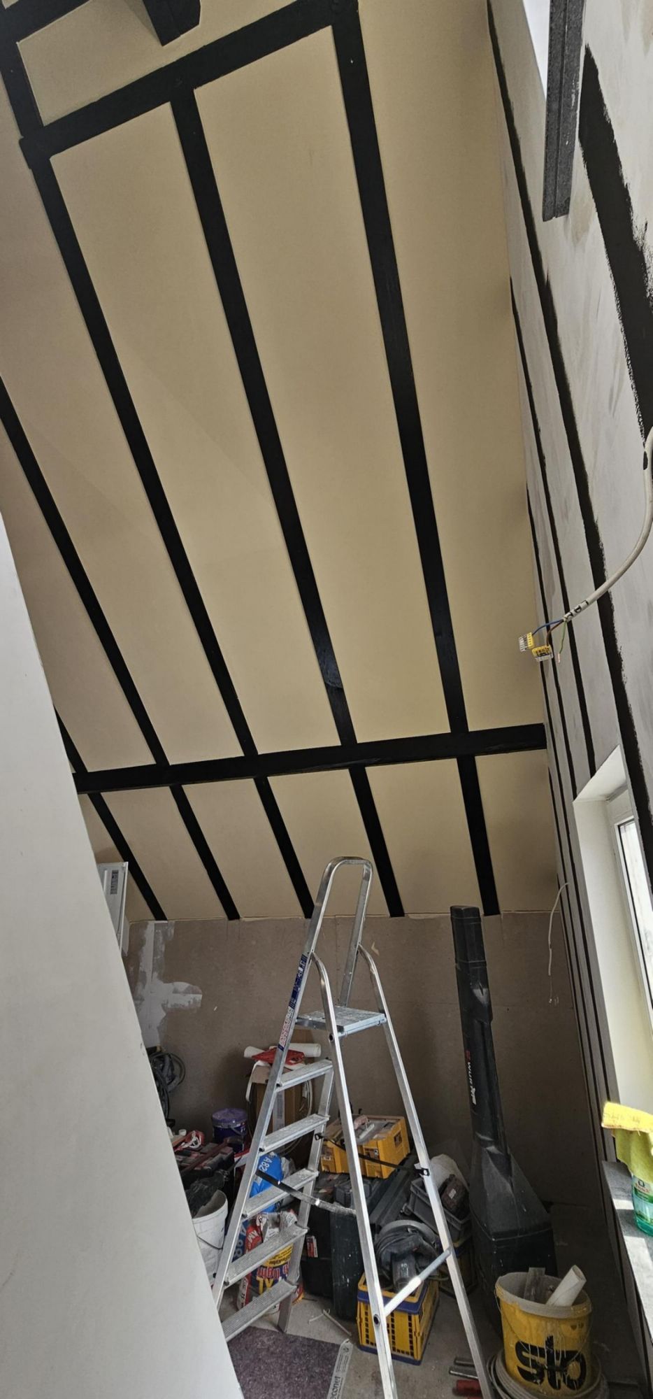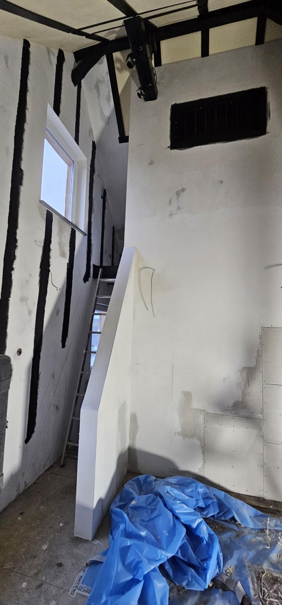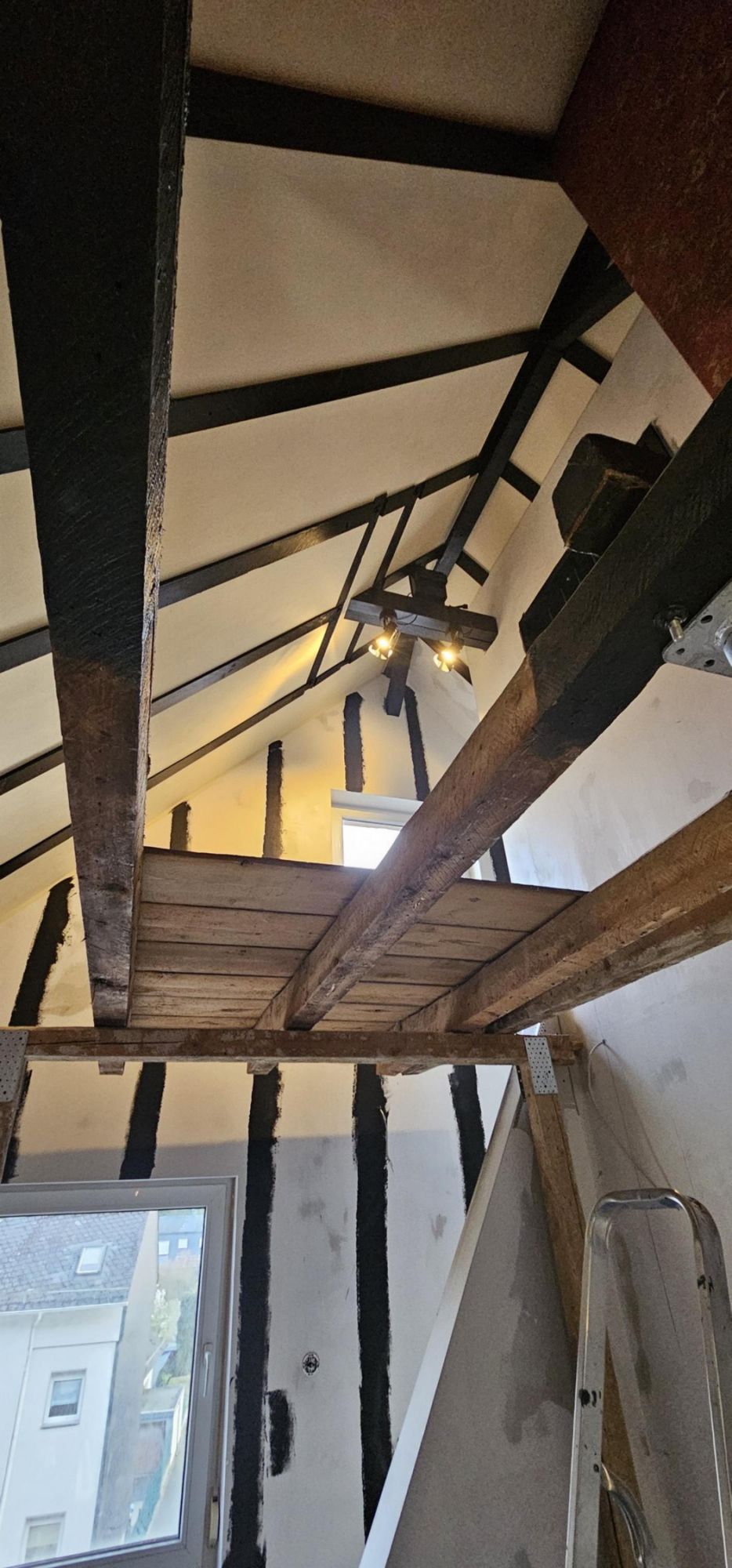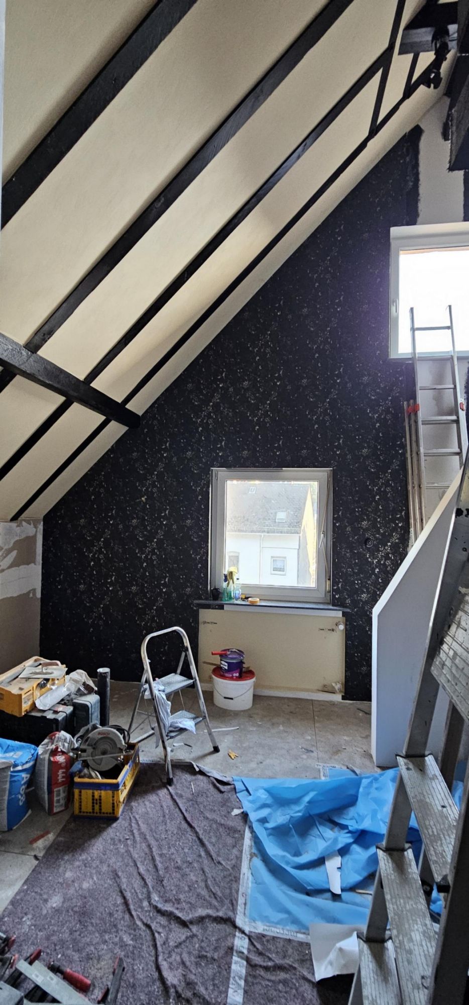 Der Kerker, richtig in den Dachboden hinein integriert, eng und ausbruchsicher mit verdeckbarem Fenster und neben einem Bondagestuhl bietet der Kerker natrürlich auch noch diverse weitere Befestigungsmöglichkeiten. Hier bricht niemand aus.